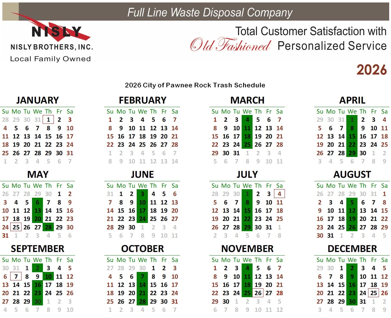 2026 Schedule For Trash and Recycling Pickup